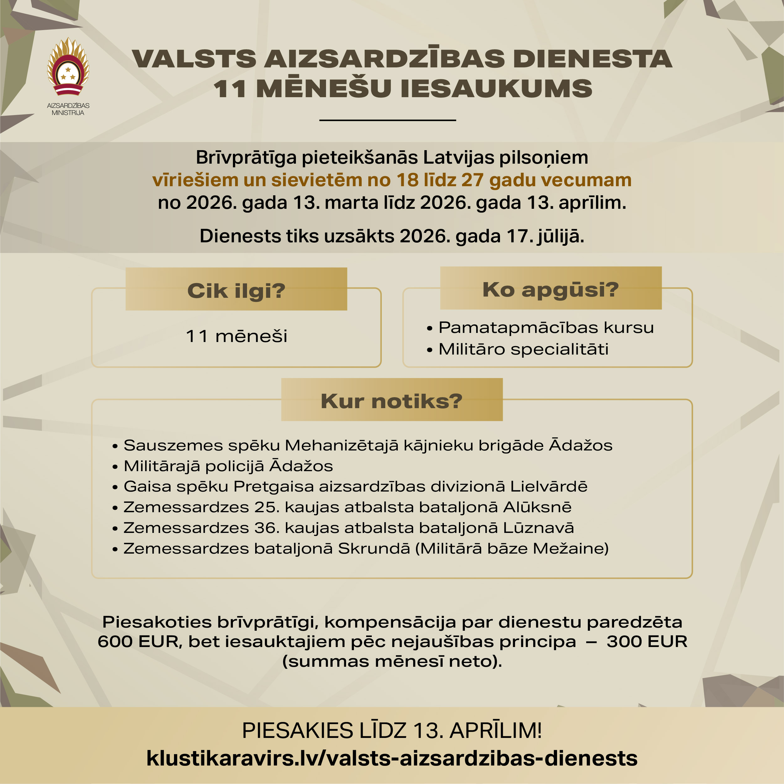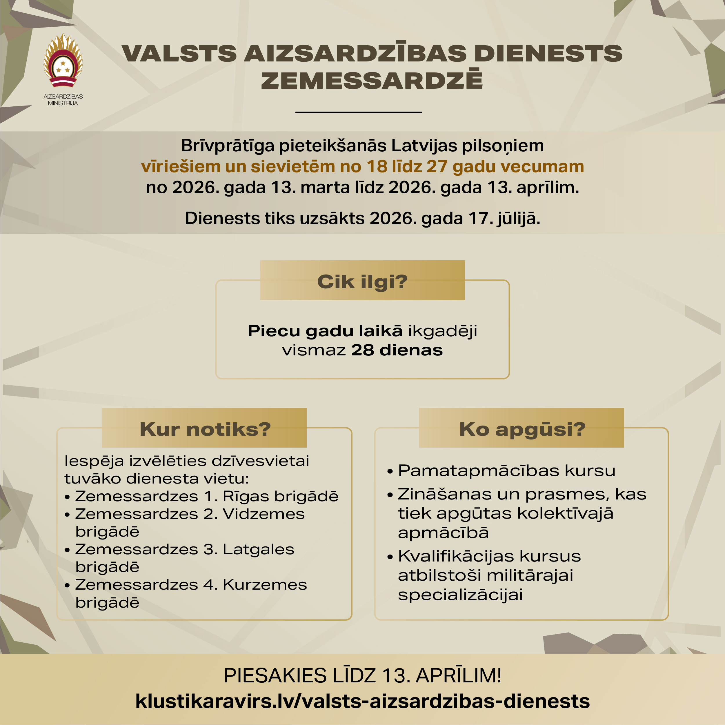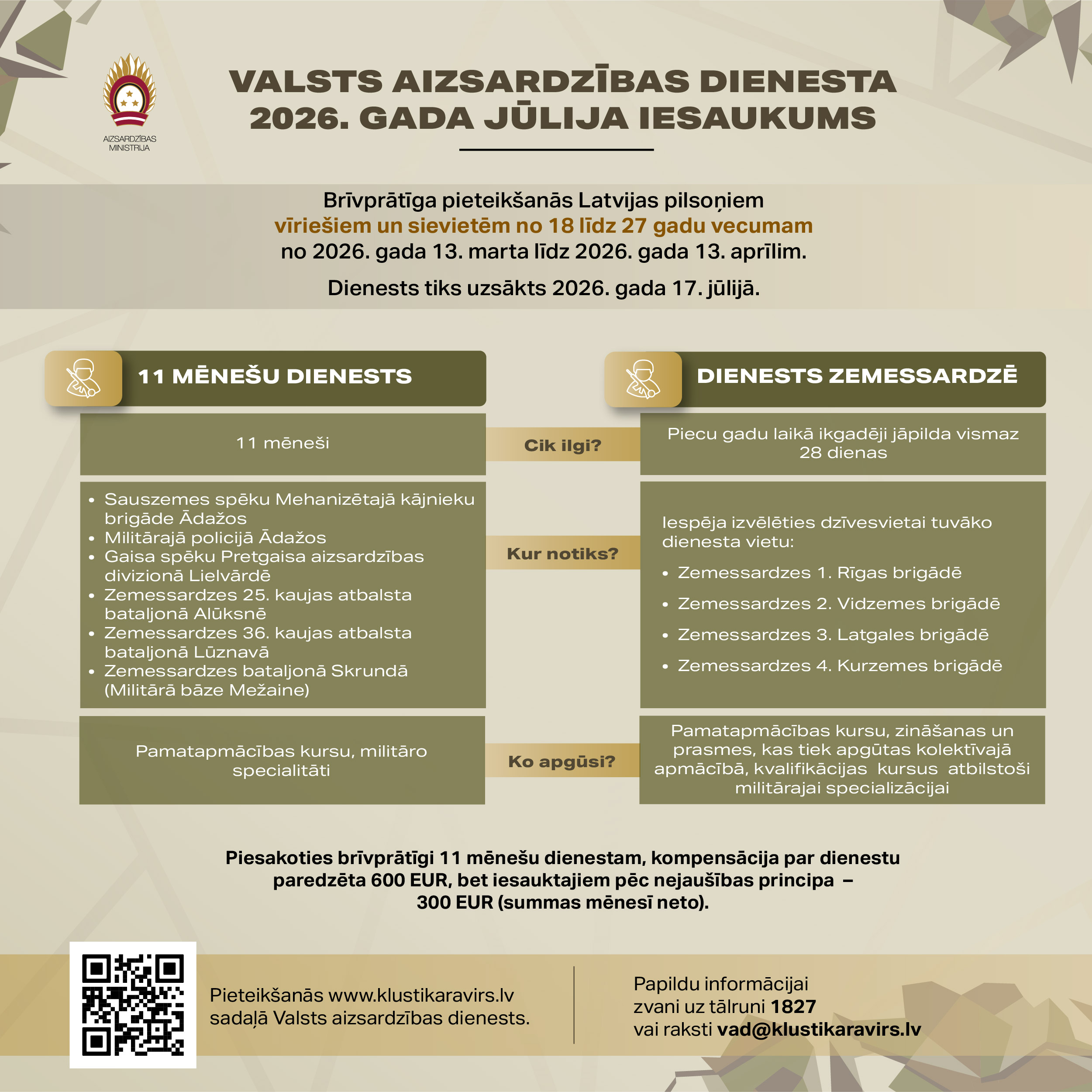 Informācija par VAD 2026. gada jūlija iesaukumu